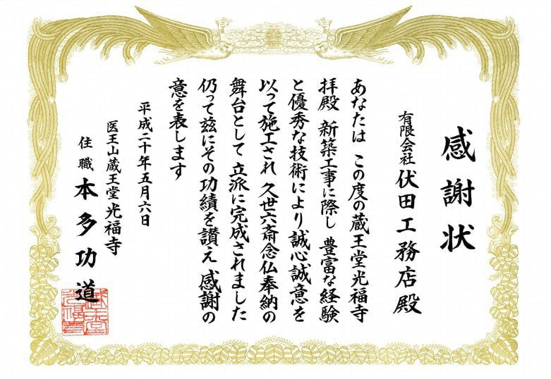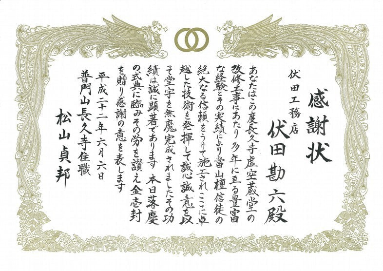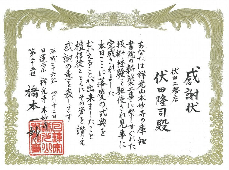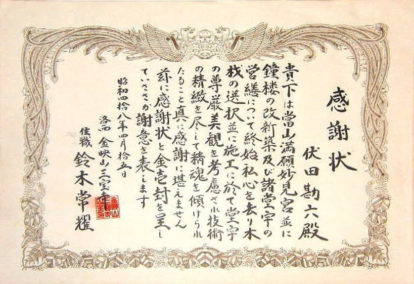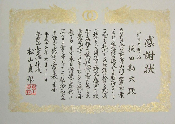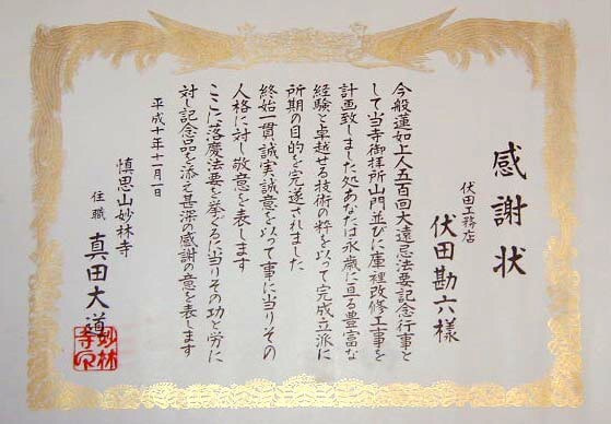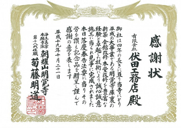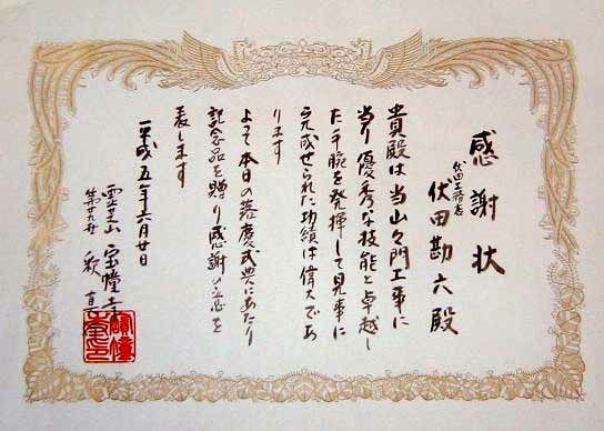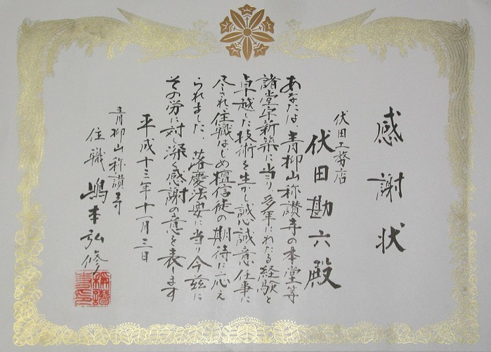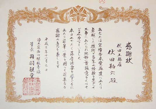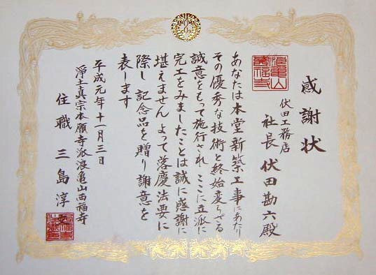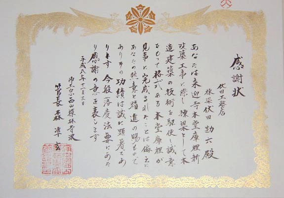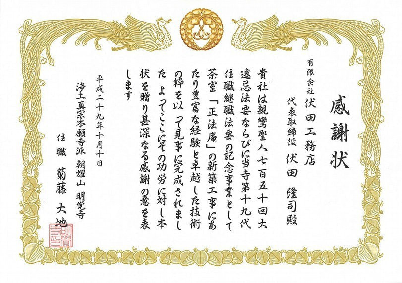 (浄土真宗本願寺派 大谷光照御門主より感謝状授受)