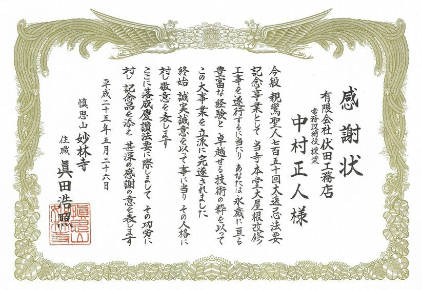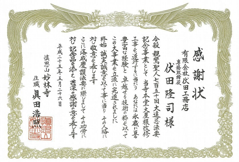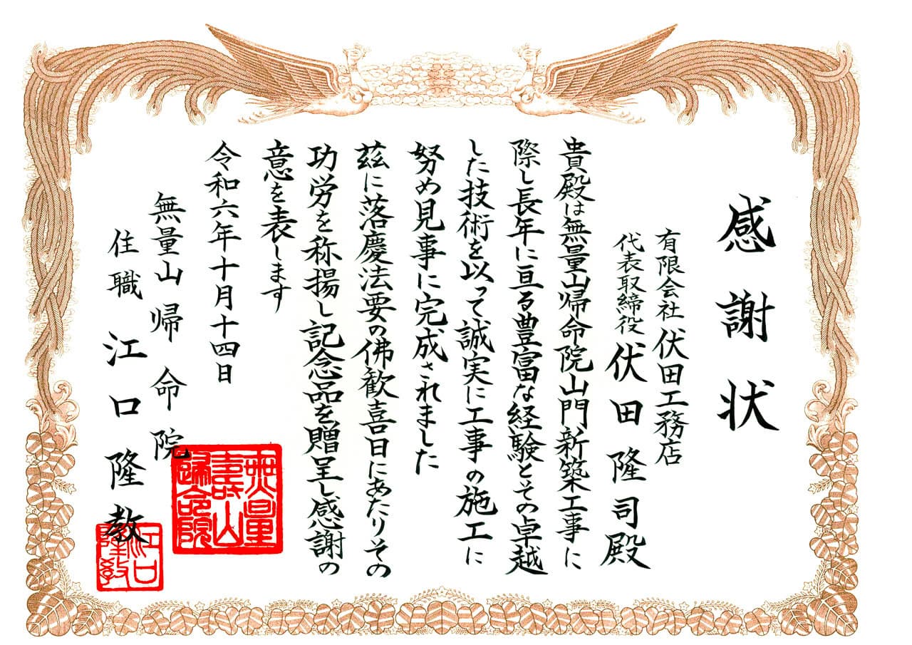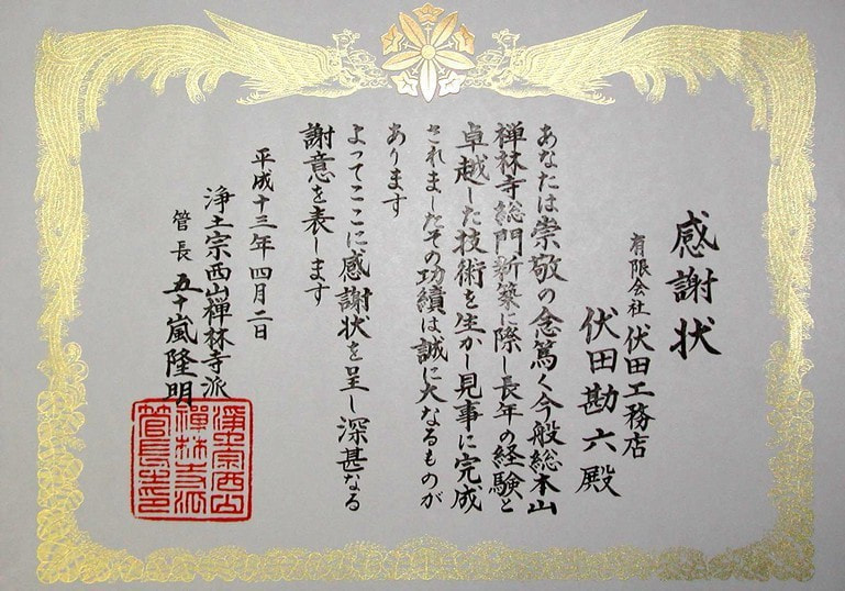 西山浄土宗管長 岩田文有氏より感謝状授受